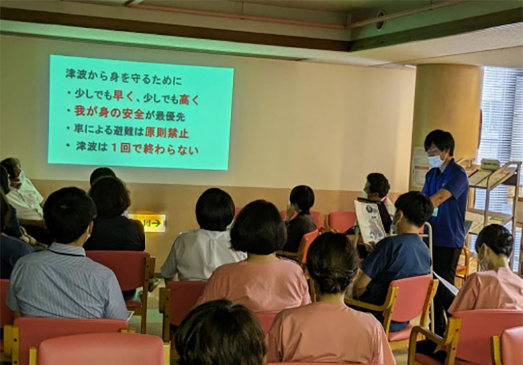 8月1日に防災委員会主催で沼津市危機管理課様にご協力いただき、地震・津波対策として出張講座を開催しました。 千本地区の津波到達状況、家庭での備えなど、短い時間の中で多岐にわたりお話を聞く事ができました。 改めて地震・津波の恐ろしさを認識し、いざという時の備え、地震・津波が発生してしまった時の行動を見直すことができた講座になりました。