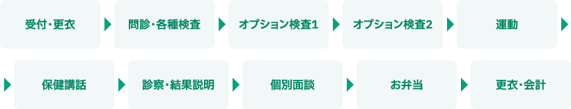 人間ドック当日の流れの一例です。実際とは異なる場合がございます。