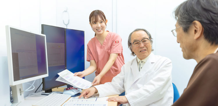 利用者様一人ひとり、人間ドックの結果をお見せしながら、医師が診察・結果説明をおこないます。
