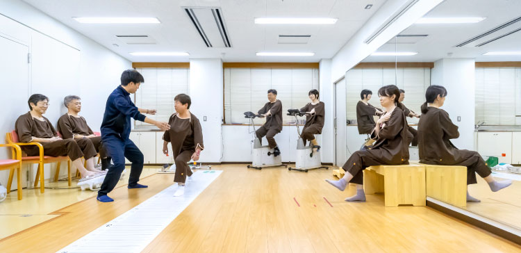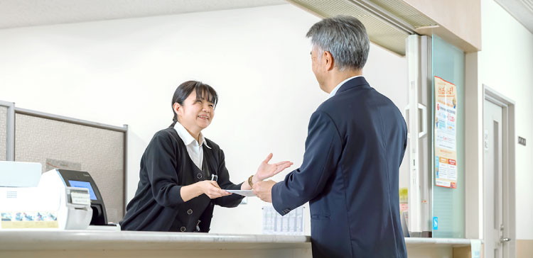 問診票・検査容器・必要書類をご提出いただき、当日の検査内容の確認をおこないます。受付後、更衣室にて健診着に着替えていただきます。
