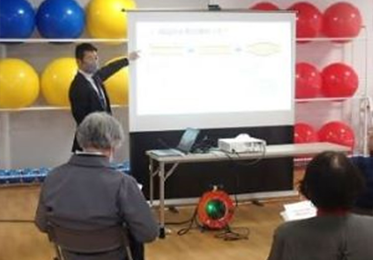 今回は、管理栄養士の髙松宏光より「美味しく減塩に挑戦!」をテーマに説明しました。参加者自身がセルフチェックすることで普段の食事でどれだけの塩分を摂取しているかを確認、実際の塩を使用し「ひとつまみ」が何グラムになるかを体験していただきました。また26種類の減塩レシピとそのポイントを紹介することで、ご家庭での塩分摂取を意識していただくこともお伝えしました。