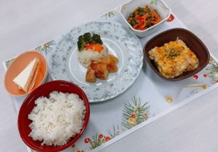 12月25日の「クリスマス」は英語では「Christmas」と記しますが、これは「キリスト(Christ)のミサ(mass)」という意味です。そして、12月24日のクリスマス・イブは、「Eve=前夜」という意味があります。 当院では、12月25日のクリスマスに合わせてクリスマスメニューを提供しました。 日本人にとっては、宗教的な意味合いはあまり強くありませんが、1年のうちの重要なイベントですね。 また、本日提供したグラタンは、毎年開催されている【聖隷福祉事業団対抗料理対決】で当院が考案したエビグラタンです。エビそのものだけでなく、エビのうま味を感じられるようにアメリカンソース