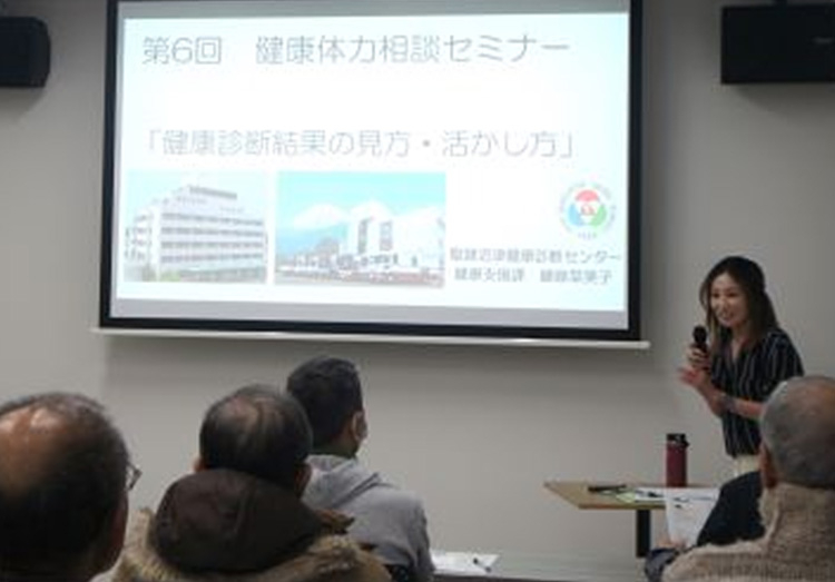 12月16日(月)香陵アリーナ会議室にて「健康診断結果の見方・活かし方」をテーマに11名の方にご参加いただき、健康診断センター保健師がセミナーを行いました。 健康診断の目的 健康診断結果表の見方について 主な検査項目について 生活習慣病は症と重症化予防について 細かな検査項目ごとの資料や、当健康診断センターの結果表サンプルを元に目的や見方について説明しました。自身の健康診断の結果をよく見なおすこと、再検査・精密検査が必要と診断された場合はその時点で病気と診断されたわけではないので、必ず受診をしてほしいと訴えました。それが健康寿命と平均寿命の差を短くすることに繋がる
