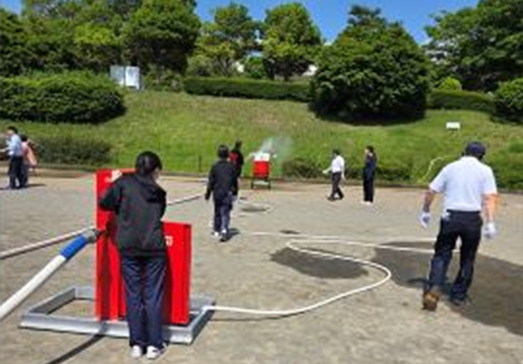 5月28日(水)愛鷹広域公園で沼津市防火協会主催の春季防災訓練が開催され、53社、333人が参加、当院からは、健診センター3名を含む計13名が参加しました。 訓練では、消火器取り扱い訓練、煙体験、三角巾取り扱い訓練、屋内消火栓取り扱い訓練、起震車体験を行いました。 中でも起震車による震度7体験は、手すりにしっかり掴まらないと立っていられないほどの衝撃で想像以上でした。 また、煙体験では前方が全く見えず、実際の火災では高熱と有毒ガスの煙が充満する中での避難と考えると恐怖を感じ、改めて訓練の重要性を感じました。自分自身の身を守ることも大切なことですが、院内に限らず地域全体で協力し合うこと