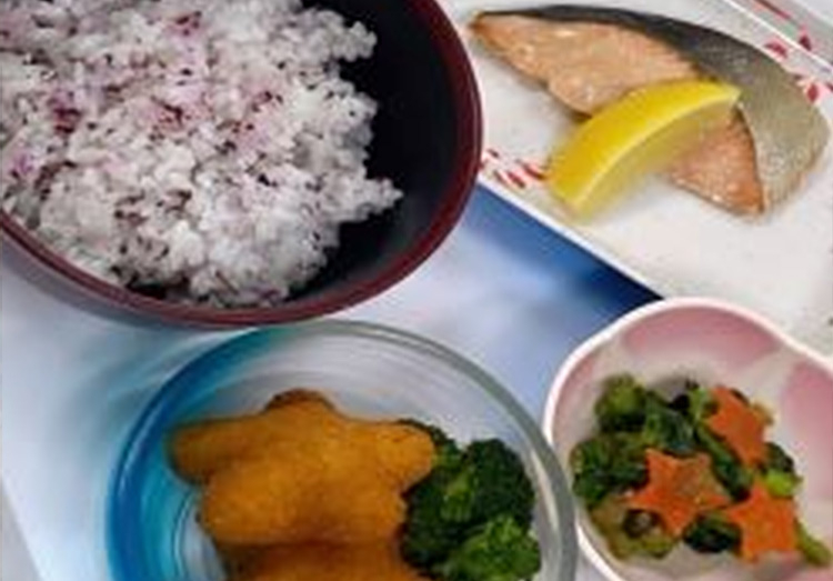 栄養管理課では、入院中の患者さんに少しでも季節の行事を感じていただけるよう、7月7日に「七夕献立」を提供しました。 七夕は、織姫と彦星が1年に1度だけ、天の川で出会える日と言われています。 七夕は「たなばた」または「しちせき」とも読み、毎年7月7日に願いごとを書いた色とりどりの短冊や飾りを笹の葉につるし、お祈りをする習慣が今も残っています。 笹は、冬場でも緑を保つことから生命力が高く邪気を払うものとされてきました。 笹や竹は神聖なものとして、古くから神事によく使われていたようです。 今回の七夕献立でも、そうした季節の風情を感じていただけるよう、彩りや盛り付けにも工夫を凝らしました。