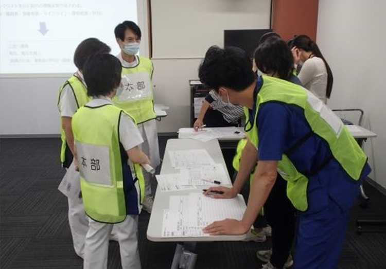 10月7日(火)休日夜間の地震を想定した机上防災訓練を実施しました。 防災委員を中心とした27名の参加者と地震発生直後の初動対応から情報収集までの一連の流れを確認しました。 災害はいつ起こるか分かりません。 休日夜間と職員数が少ない中でどう行動すればいいのか課題と反省点も多く見つかりました。 もしもの時に備えられるよう訓練を通して職員全員が迅速に対応できる力を身につけていきます。10月9日(木)愛鷹広域公園で沼津市防火協会主催の秋季防災訓練が開催され、43社、184人が参加、当院からは、計3名参加しました。 訓練では、消火器取り扱い訓練、三角巾取り扱い訓練、屋内消火栓取り扱い訓練を行
