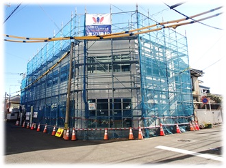 前回のブログでは建設途中の様子をお伝えしましたが、現在は外壁工事も完了し、建物の全体像が見えるようになりました。