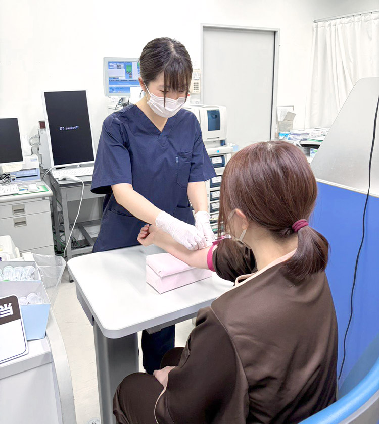 心電図、肺活量、採血を中心に業務を行っています。