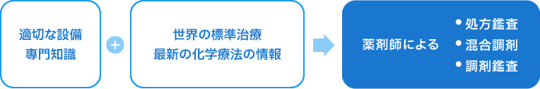 細胞毒性のある抗癌剤は、安全キャビネットを用いて調製しています。