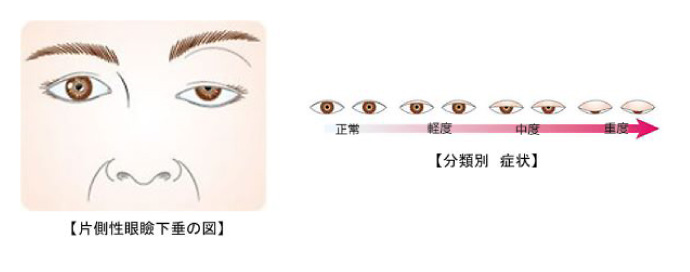 まぶた(眼瞼)が垂れ下がって、目が十分に開けられない状態を指します。