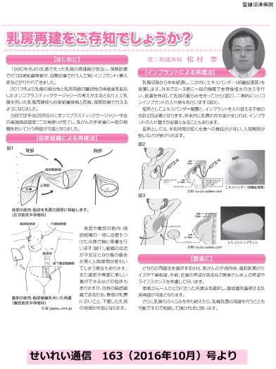 乳房再建をご存知でしょうか?(広報誌「せいれい通信」より)