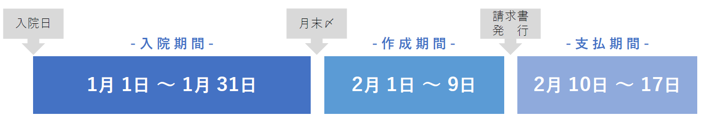 翌月10日以降に「A棟1階会計窓口」に請求書をご用意いたします。
