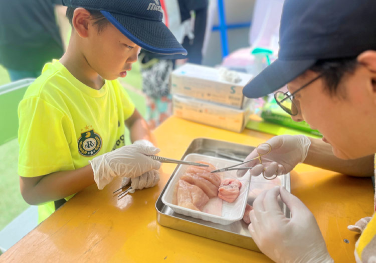 また、地域交流の一環として、外科医師の指導のもと中高生を対象に縫合体験を実施し、医療を身近に感じていただく機会を設けています。