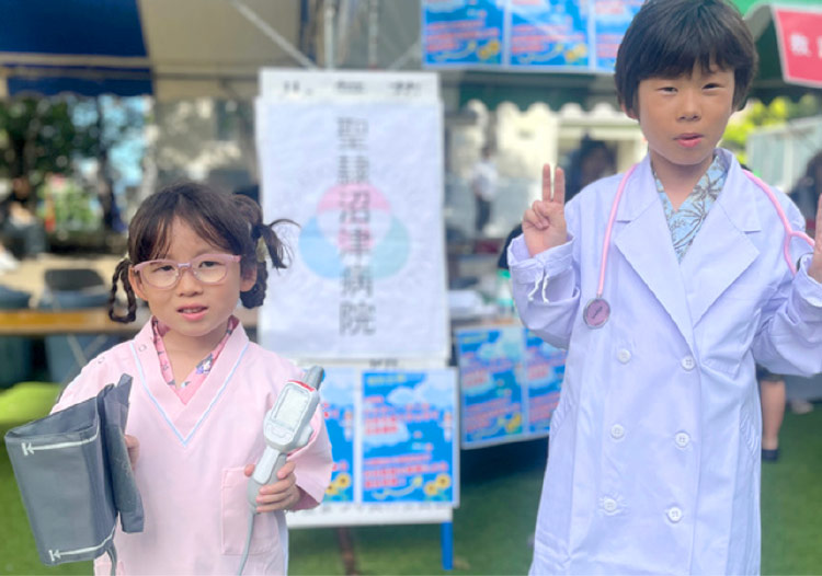 小学生未満の子どもたちには、医師・看護師の白衣を着ての記念撮影を行い、地域住民とのふれあいの場としても活用しています。