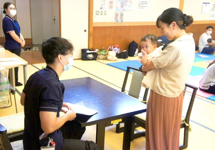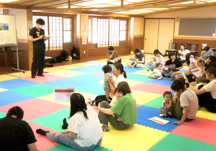 千本プラザで毎月開催される「赤ちゃんDAY」に参加し、地域の子育て支援に取り組んでいます。親子で楽しめるプログラムが行われる中で、当院は健康講話を担当しています。